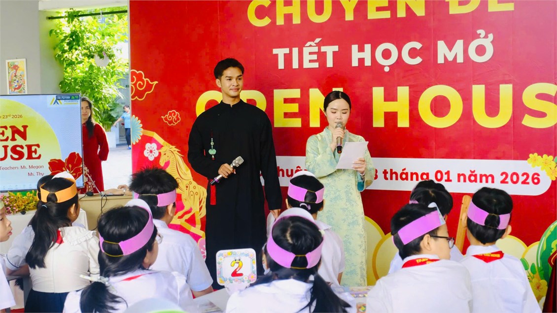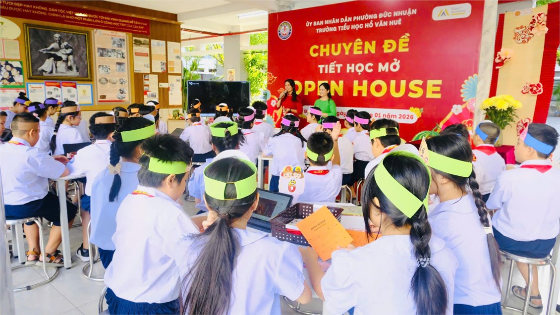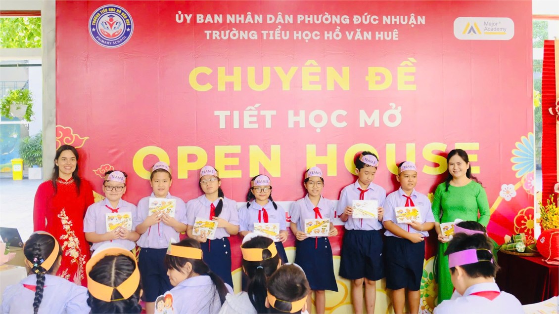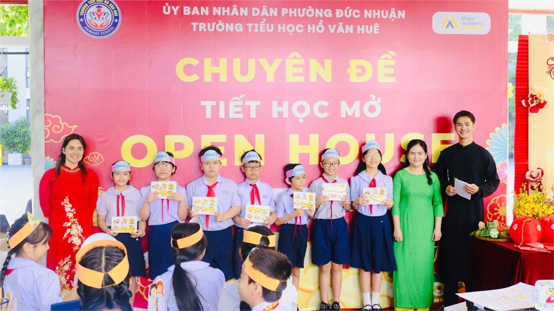 Vào sáng thứ Sáu, ngày 23/01/2026, Trường Tiểu học Hồ Văn Huê đã phối hợp cùng Trung tâm Anh ngữ MAJOR tổ chức Chuyên đề tiết học mở với chủ đề văn hóa “Open House – Tết Holiday”. Tiết học được thực hiện tại lớp 5/5 do cô Megan Young; cô Nguyễn Huỳnh Đoan Thy trực tiếp giảng dạy.